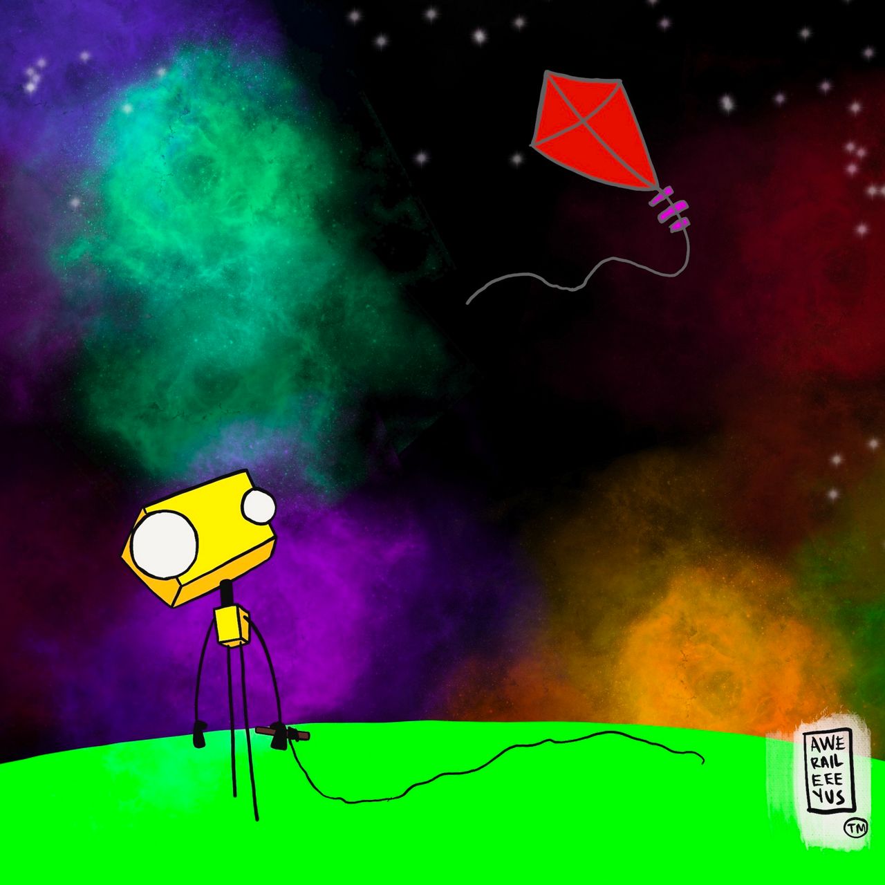 “I started making these little robots out of cardboard and duct tape and wires, and one of them just looked really cool,” he says. “He looked like he had a bunch of personality. So I started painting it, and got a little cleaner and more refined, and there started to be stories associated with it, just little things that added to the patchwork until it became what it is now.”