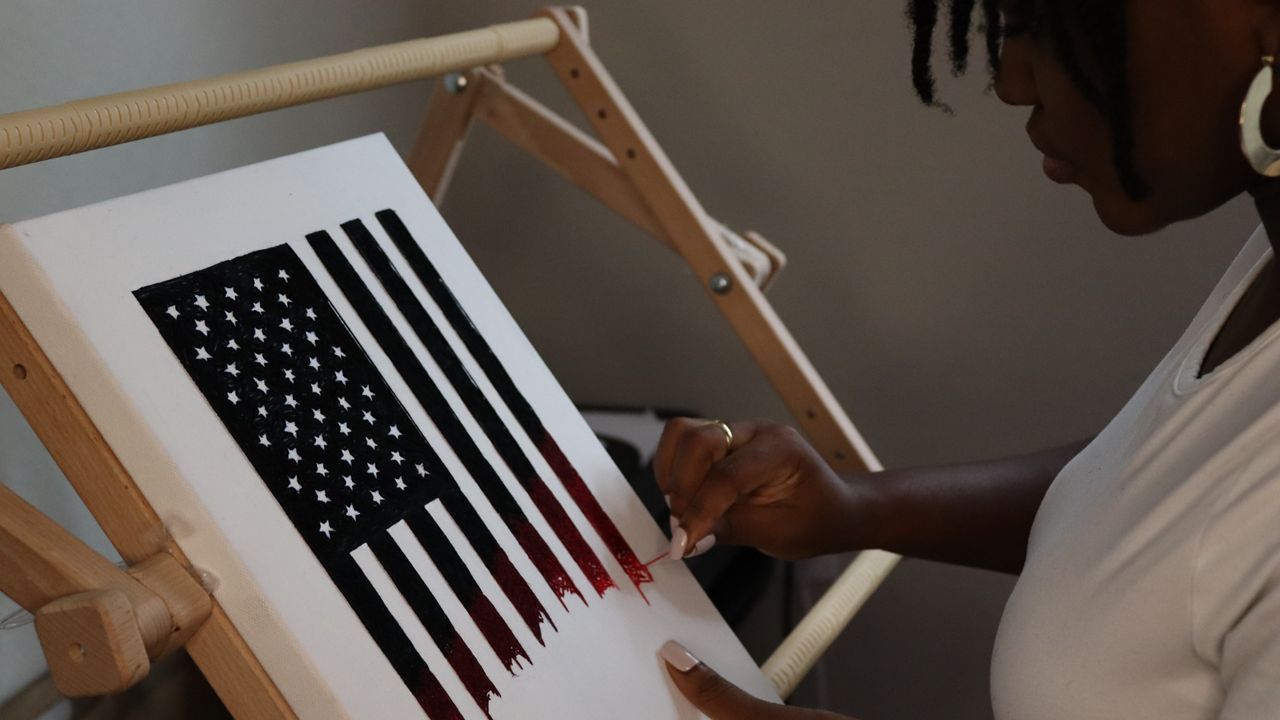 “It’s not that the piece is erasing the history of America, and it’s not that it’s destroying the flag in any way. It’s just a form of reshaping and remolding and showing that it’s a work in progress for everyone in America and outside America to let these Black voices be heard and create more equality in the future,” she said.