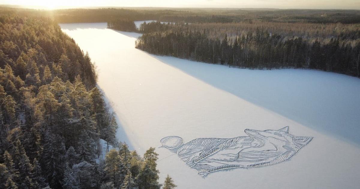 For the sixth year in a row, the Finnish artist Pasi Widgren has left people speechless. During the first week of December, Widgren took to the frozen Lake Pitkajarvi with the aim of creating temporary art. Using a shovel, the famous artist removed snow from the surface of the icy lake to reveal a beautiful 90-metre fox.
