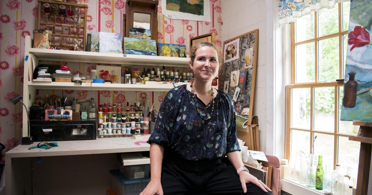 Nellysford painter and ceramic artist Elise Lauterbach also knows about resource and reinvention. That Saturday she stood inside the bright, colorful studio she converted from a neighbor’s windowless science laboratory.