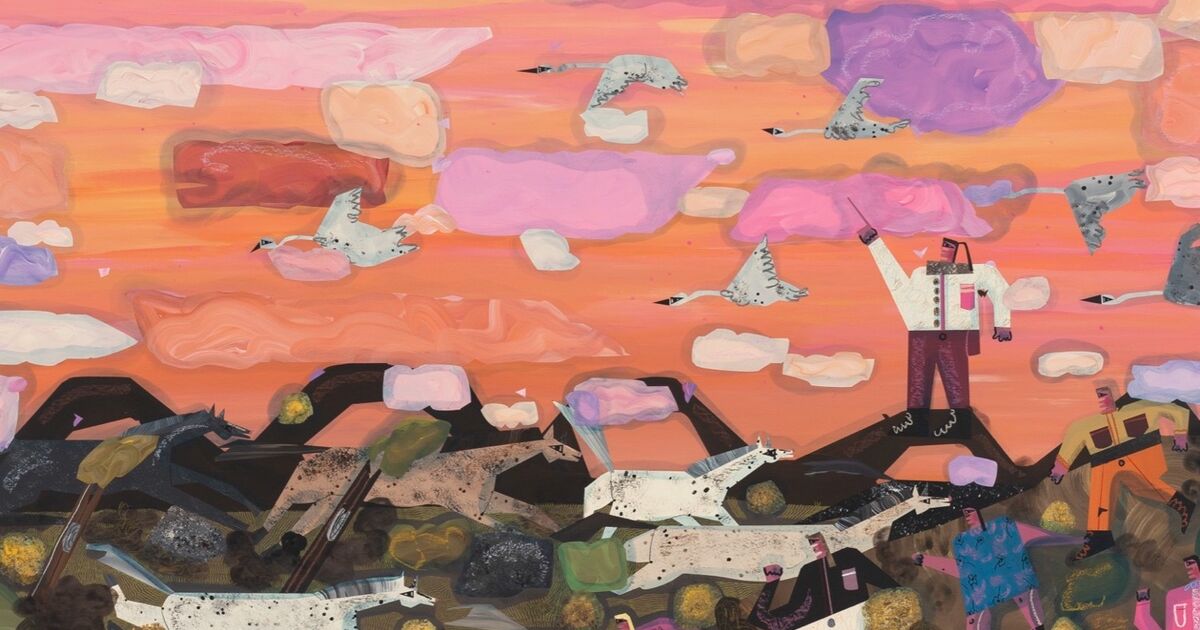 Andrea Joyce Heimer is garnering a wealth of attention in the wake of “Heartbreak on the high plains,” her new show of paintings and drawings at Nino Mier Gallery in Marfa, Texas, on view until June 17. These deeply personal, diaristic works build upon the artist’s distinctive, narrative style, this time tapping into the heartbreaks she’s experienced, from the romantic kind to family tragedies that she endured while growing up in Montana. “Making each [work]was an exercise in retracing a heartbreak that seemed inescapable at the time but whose sting has now lessened,” Heimer wrote in an artist statement. “But most of all, making this work kept my hands busy during the days most clouded by grief—each one a pocket of air where I could breathe a bit while I waited for time to pass.”